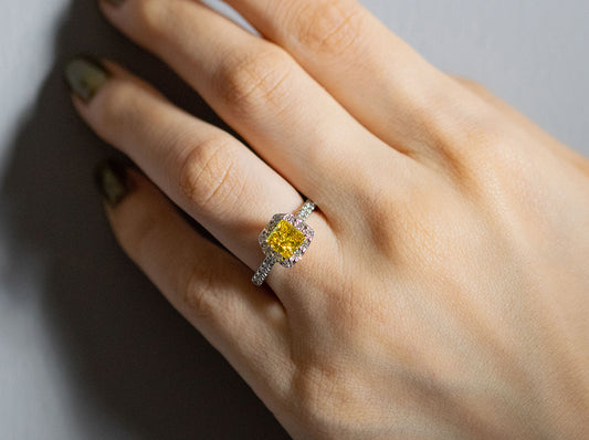プリンセスカット ラボグロウン イエロー&ホワイトダイヤモンドリング