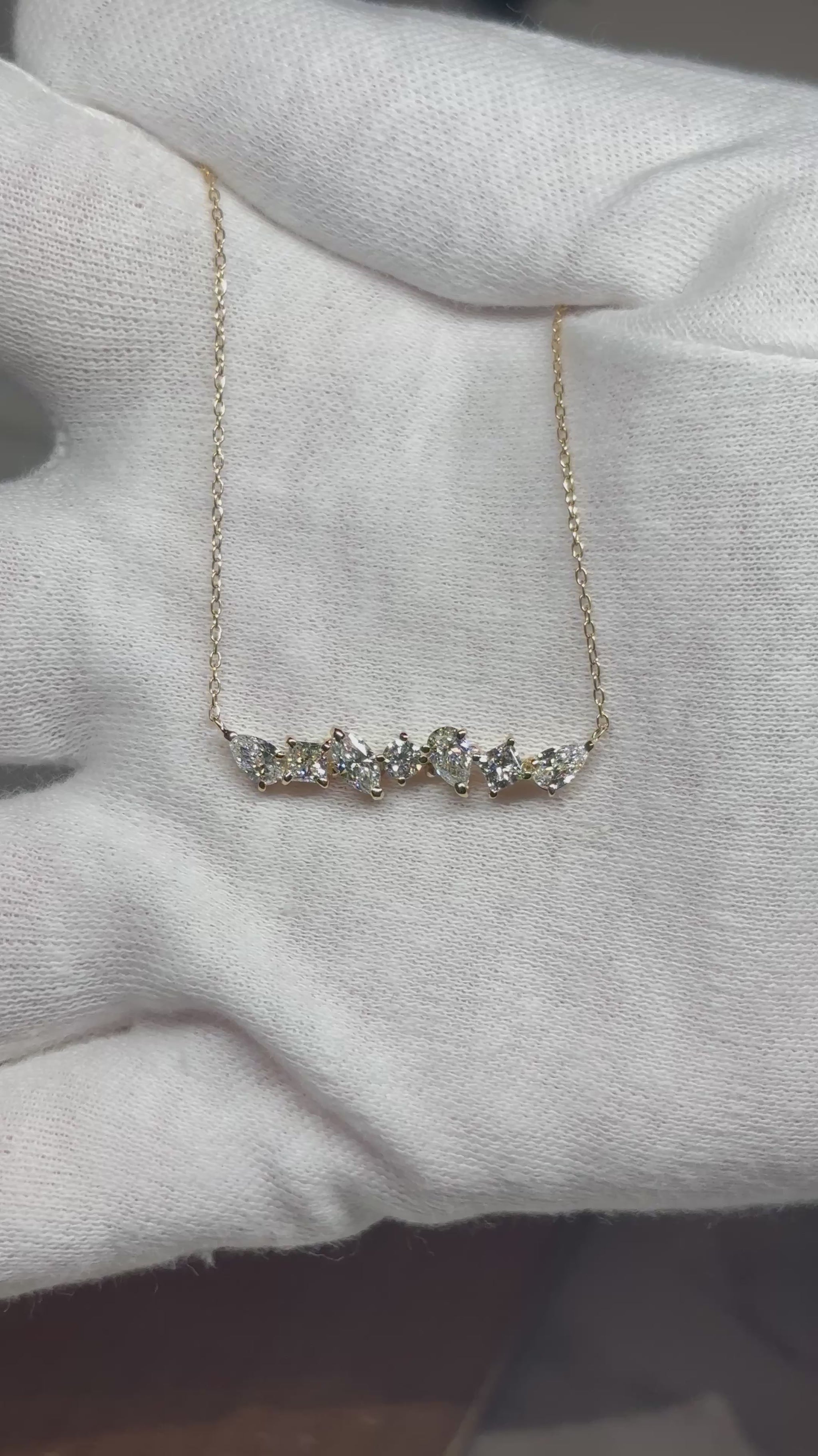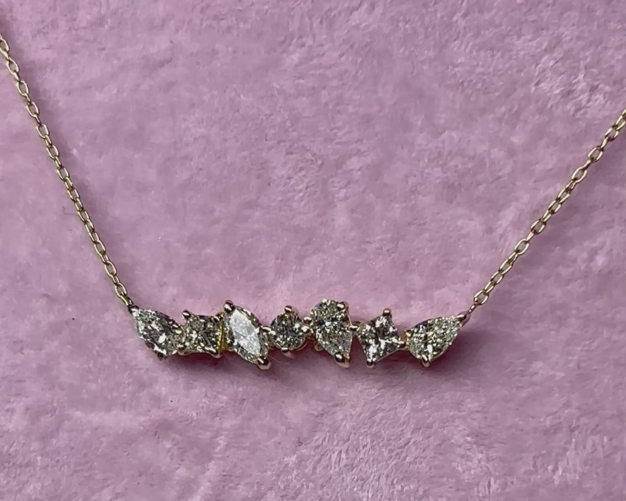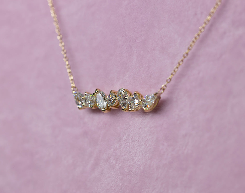 1粒0.1ct以上の様々なカットのダイヤモンドをネックレスにお仕立てしました。