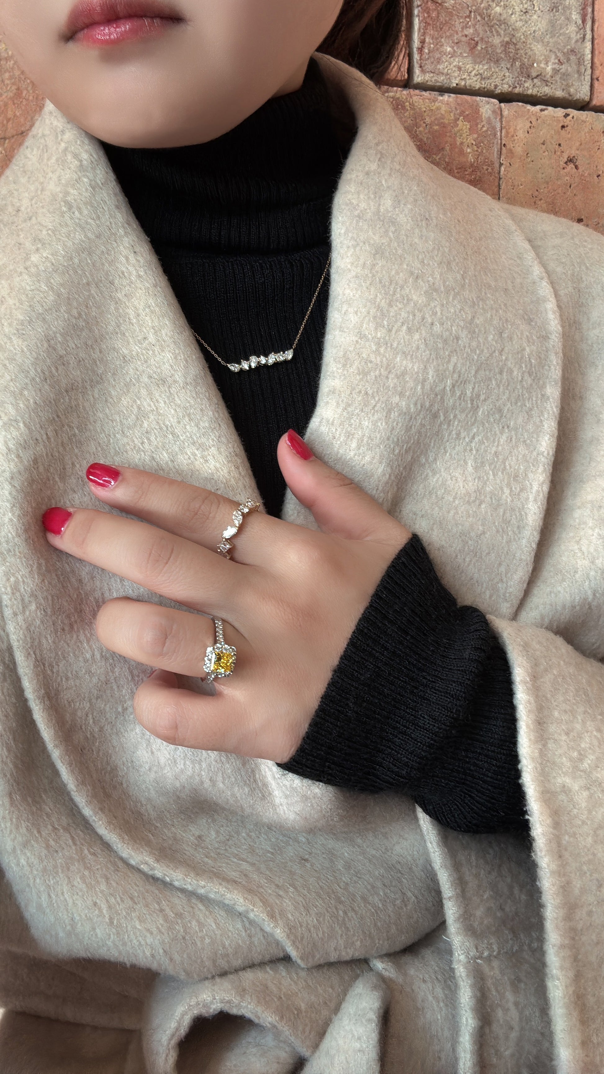 ※職人さんが一粒ずつ手作業で台座セッティングしています。そのため、ダイヤモンド1粒の角度などが多少変わることがございます。