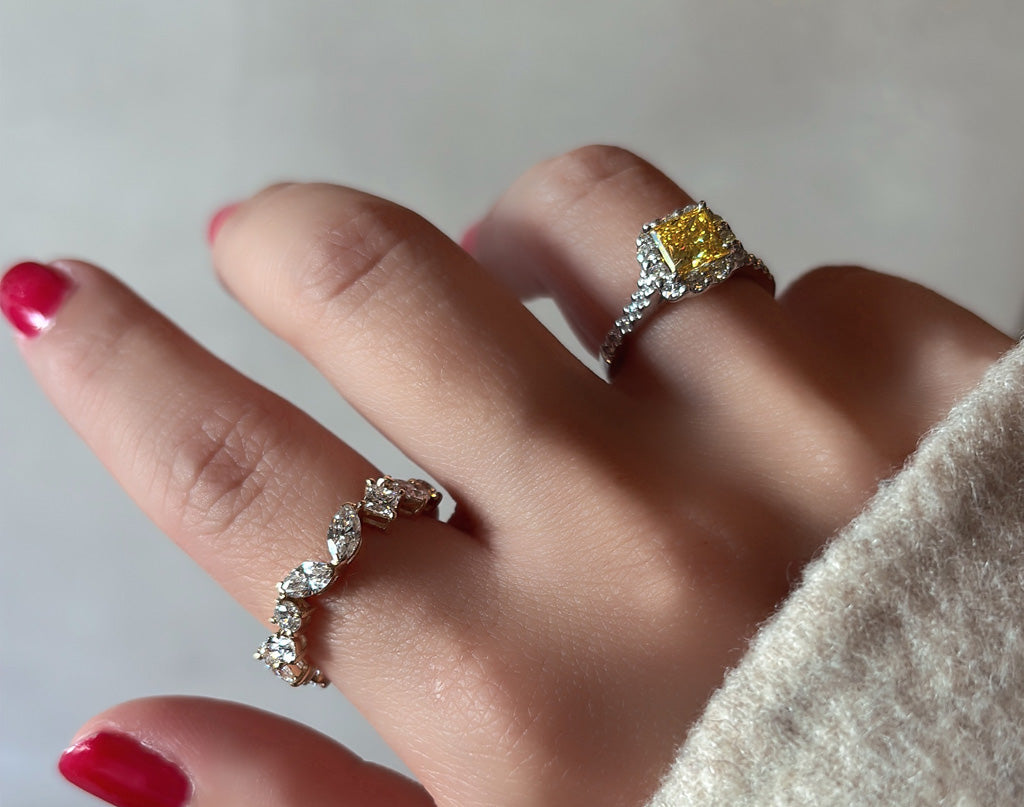 1粒0.1ct以上の様々なカットのダイヤモンドをリングにお仕立てしました。