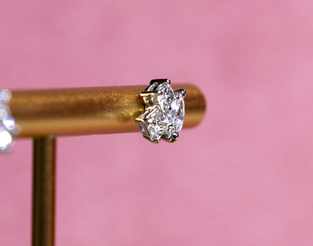 1粒0.1ct以上の様々なカットのダイヤモンドをピアスにお仕立てしました。