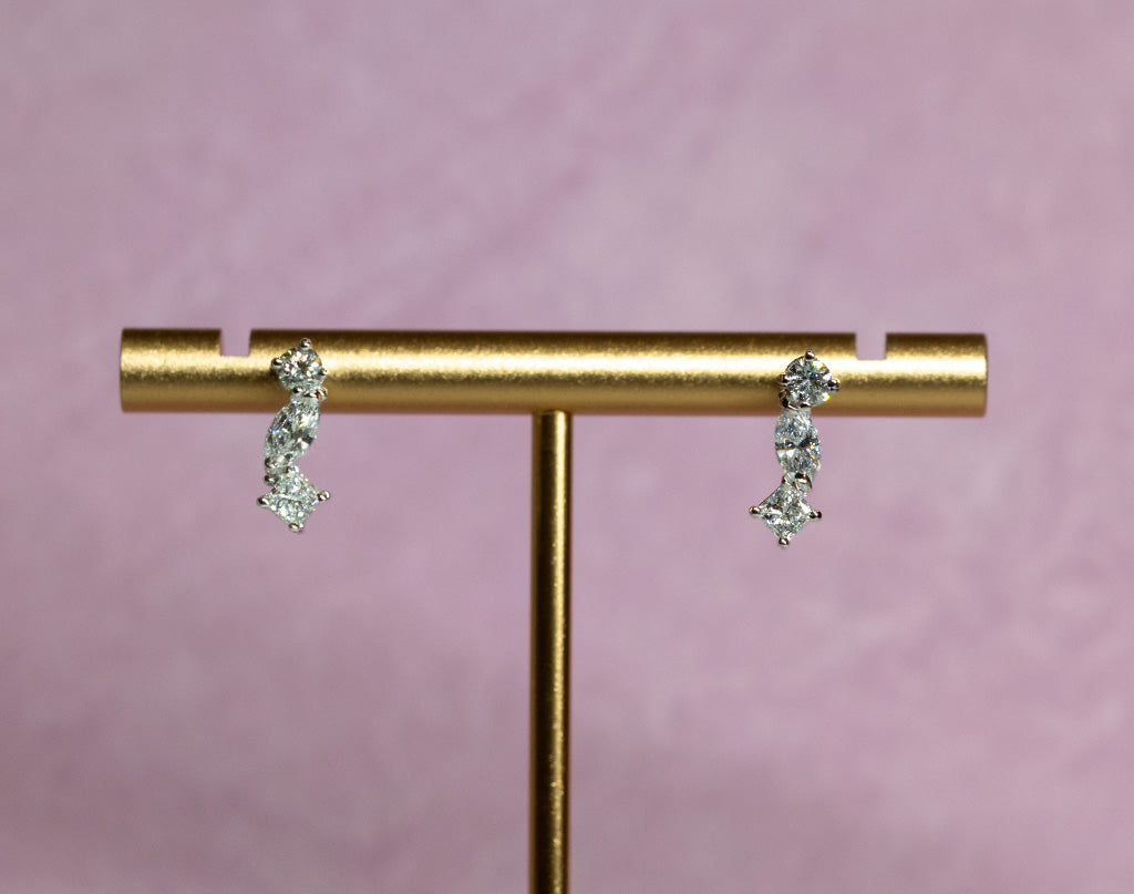 1粒0.1ct以上の様々なカットのダイヤモンドをピアスにお仕立てしました。