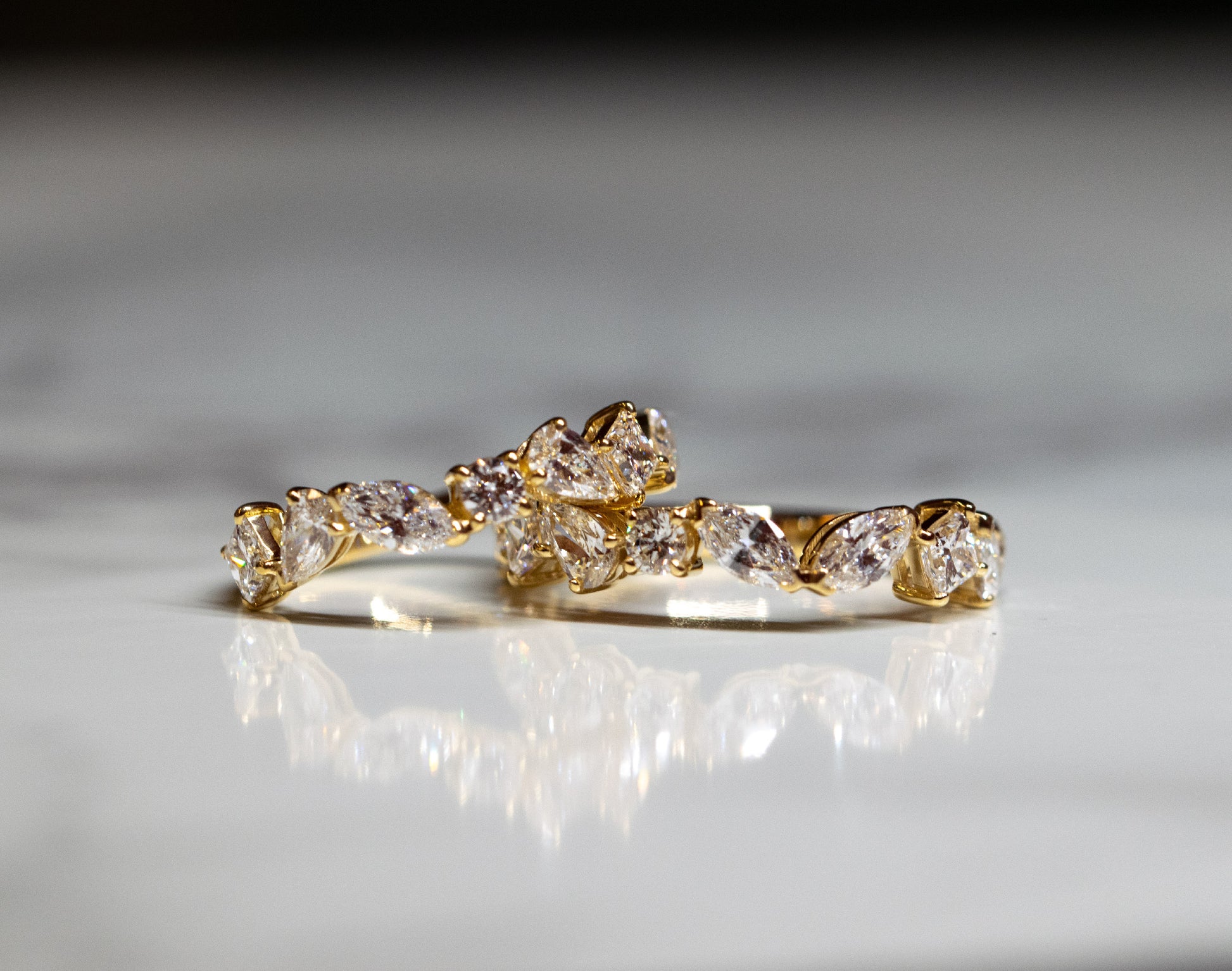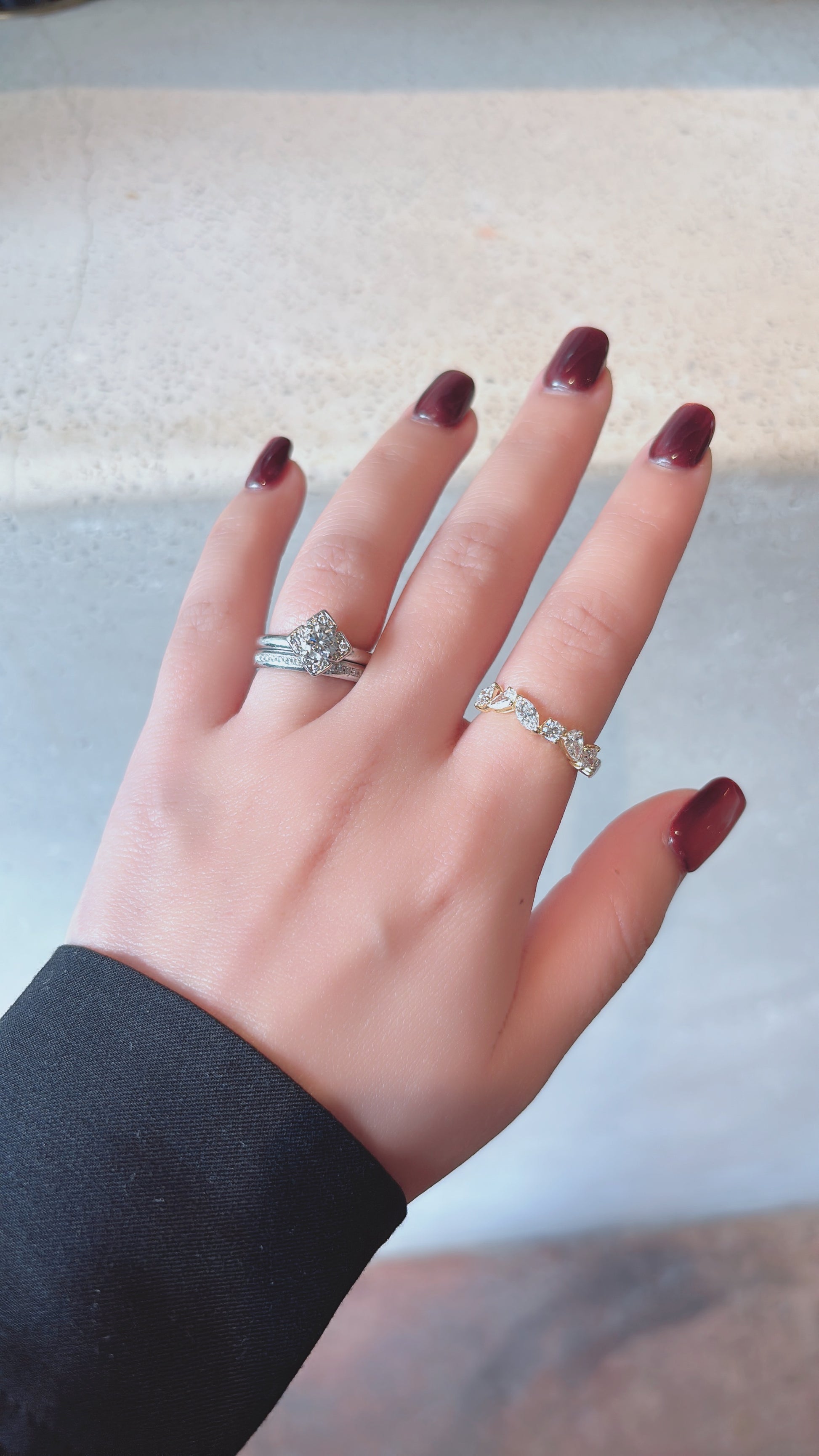 1粒0.1ct以上の様々なカットのダイヤモンドをリングにお仕立てしました。
